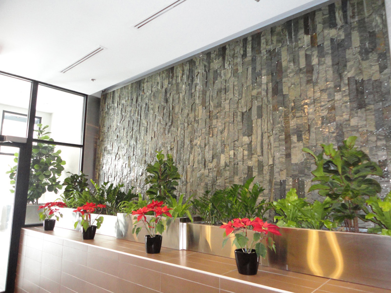 #130 Mur d'eau grand format, sur ardoise, avec encastrés lumineux, situé au Loft des Arts.