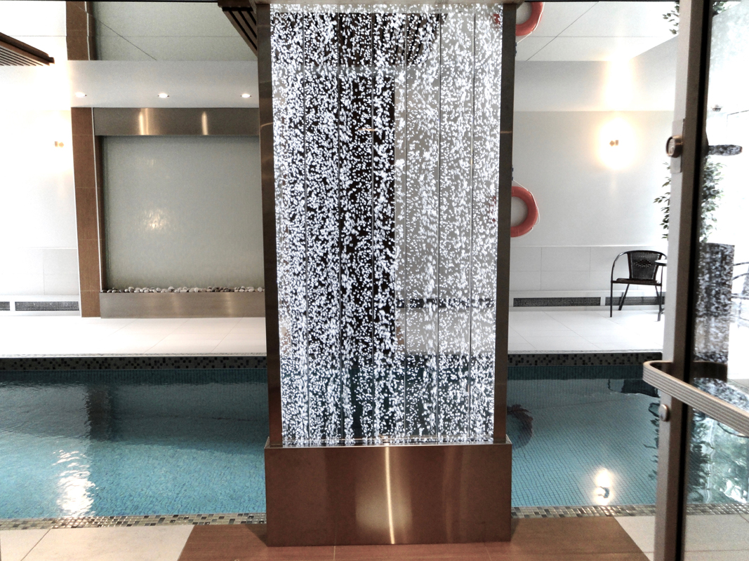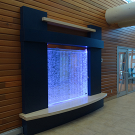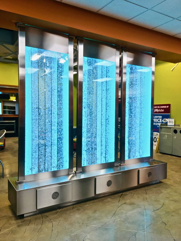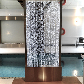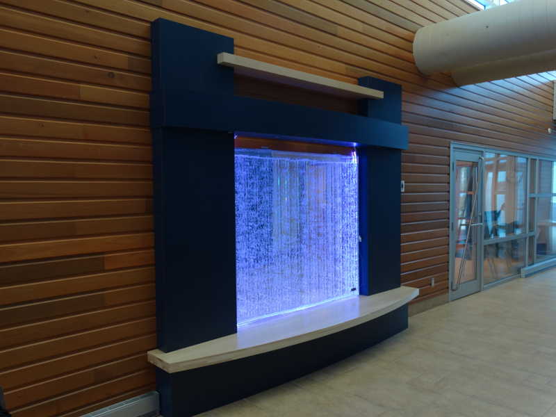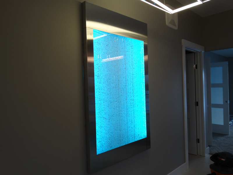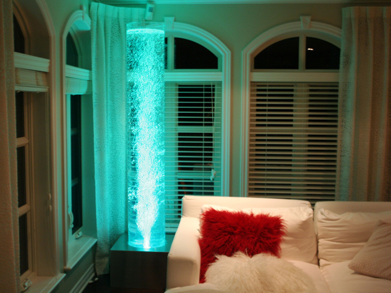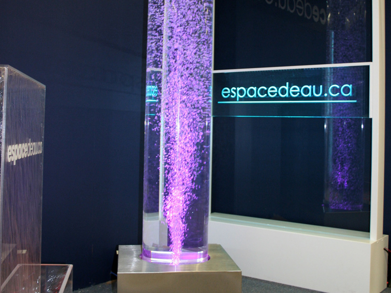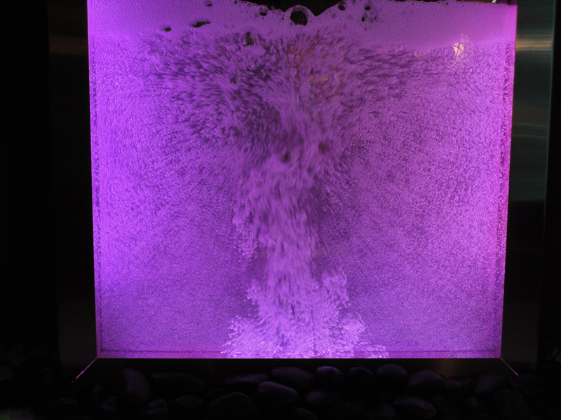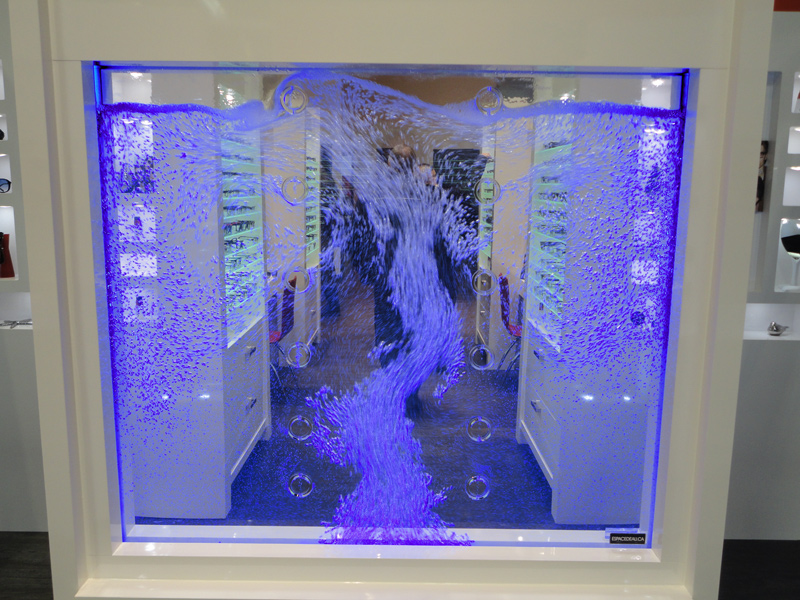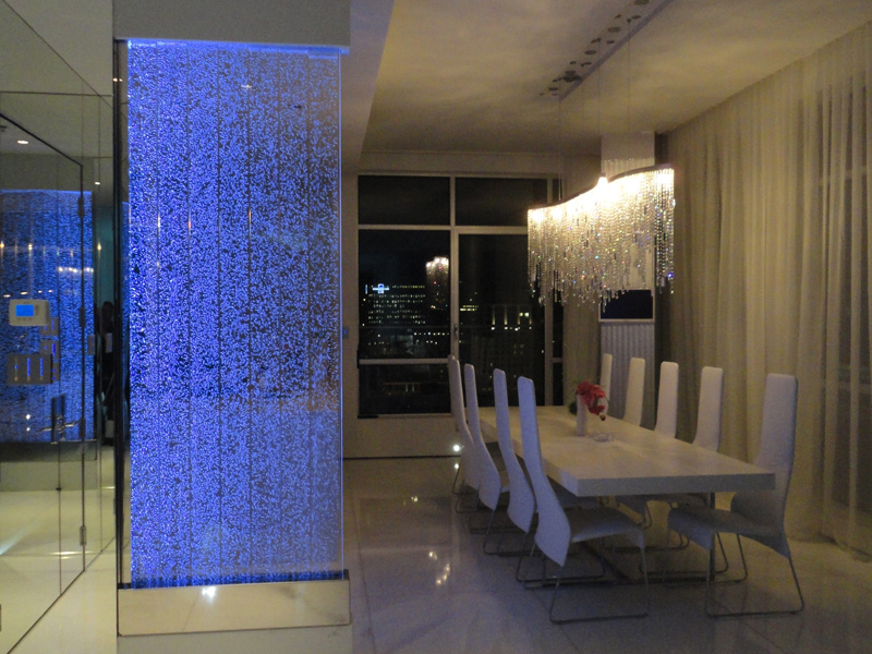 Les murs de bulles intérieurs ajoutent de la vie à vos espaces. Alternative aux cloisons traditionnelles, les murs de bulles étonnent toujours par leur mouvement et leurs couleurs variées. Puisque l'eau est un élément négatif et l'air, un élément positif, le mur d'eau agit en tant que filtreur naturel, attirant les poussières vers l'eau et nettoyant ainsi l'air, tout en gardant le taux d'humidité ambiante stable.