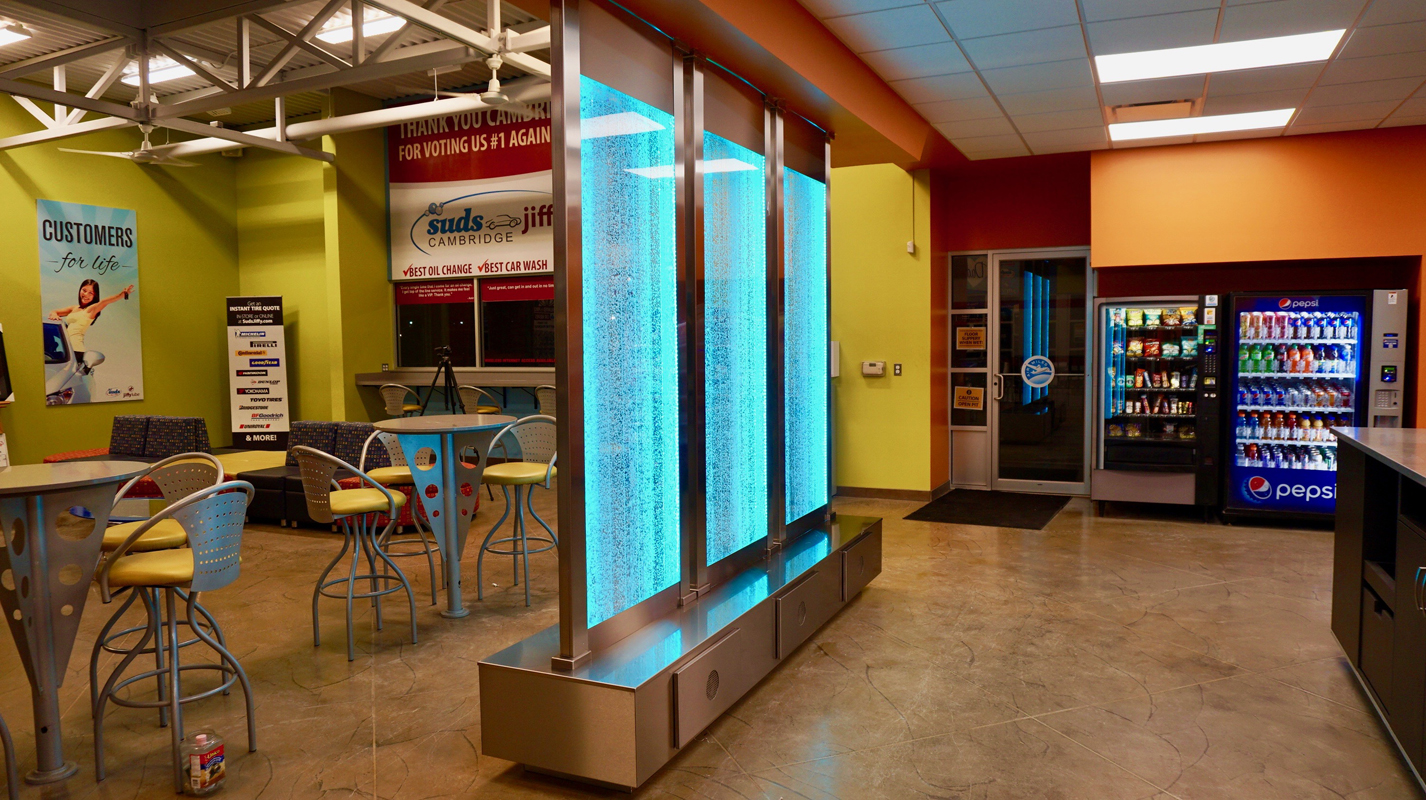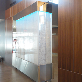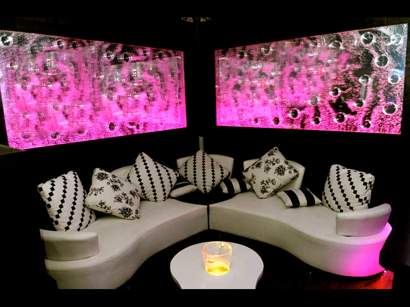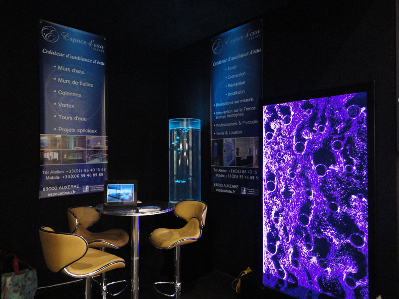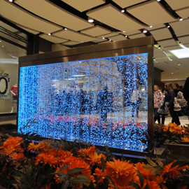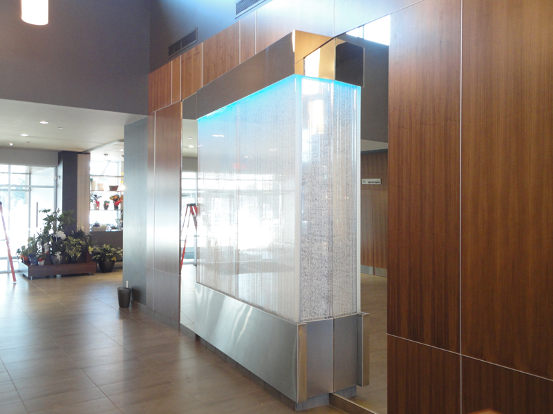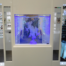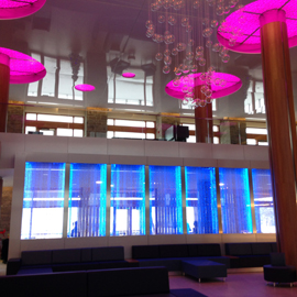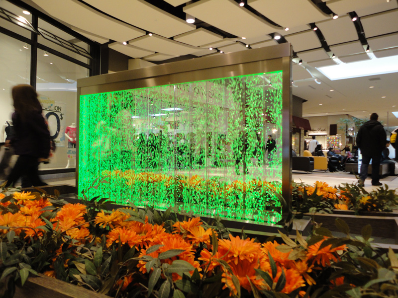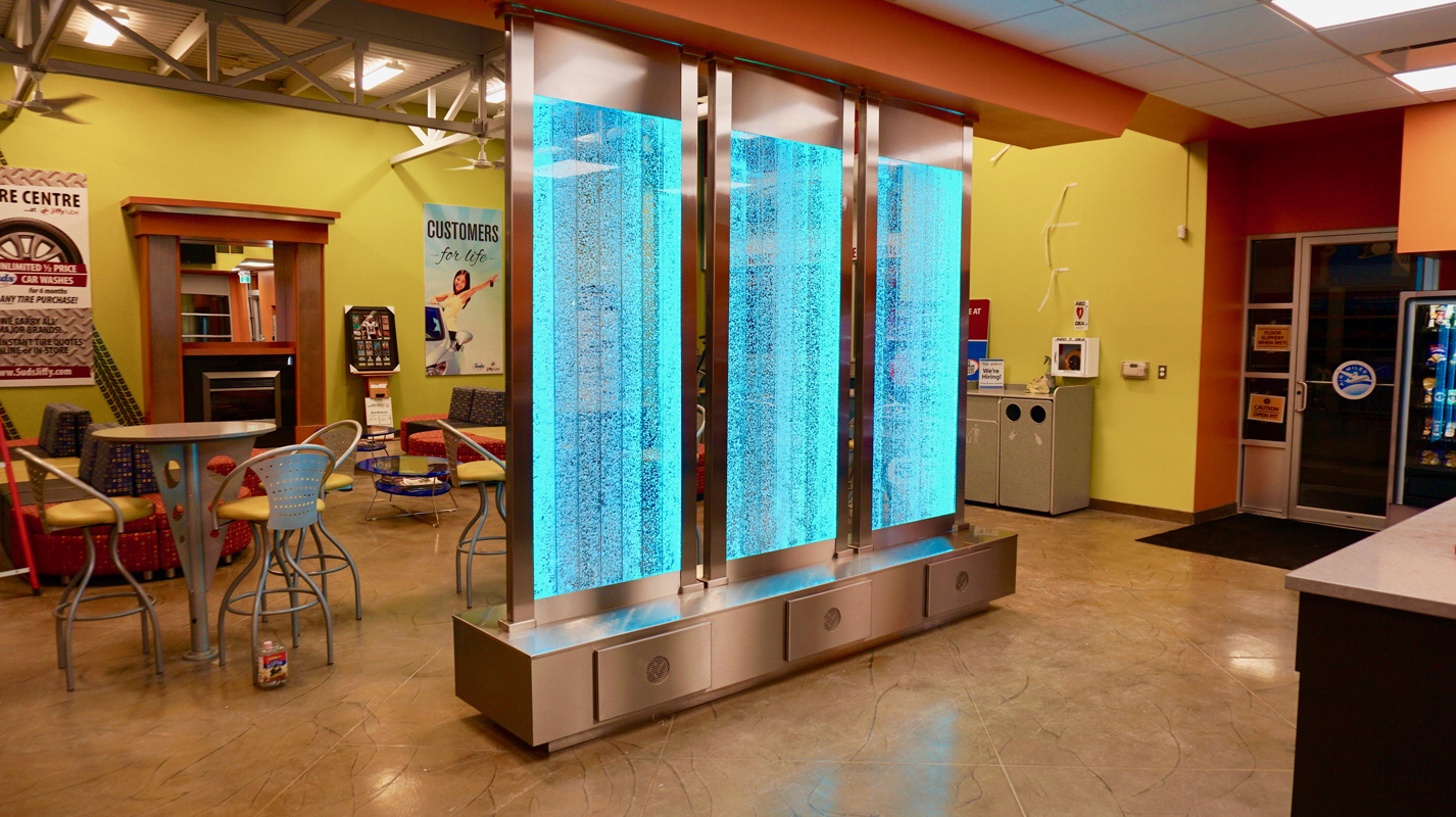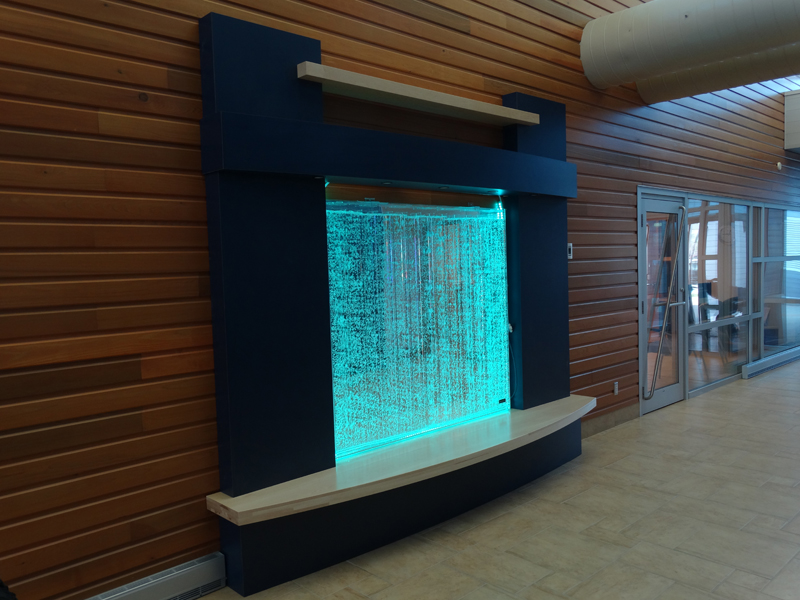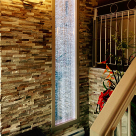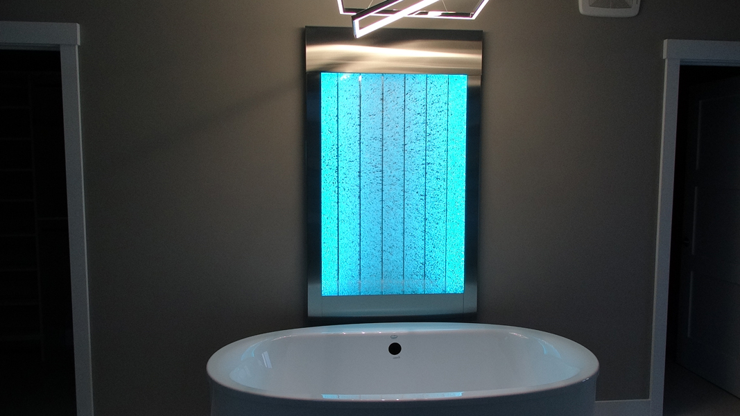 Les murs de bulles intérieurs ajoutent de la vie à vos espaces. Alternative aux cloisons traditionnelles, les murs de bulles étonnent toujours par leur mouvement et leurs couleurs variées. Puisque l'eau est un élément négatif et l'air, un élément positif, le mur d'eau agit en tant que filtreur naturel, attirant les poussières vers l'eau et nettoyant ainsi l'air, tout en gardant le taux d'humidité ambiante stable.