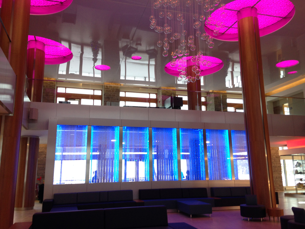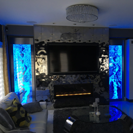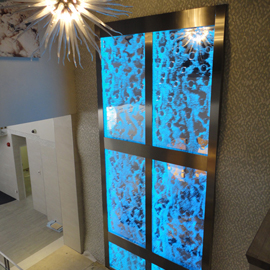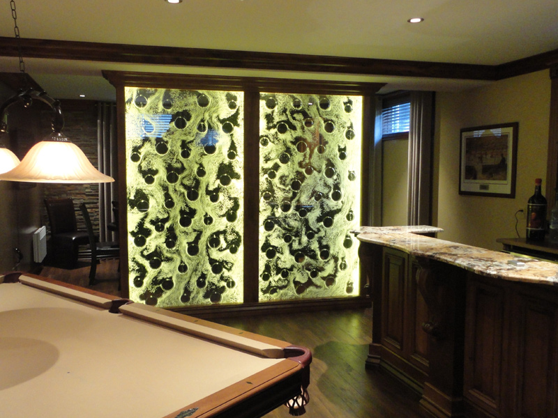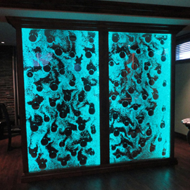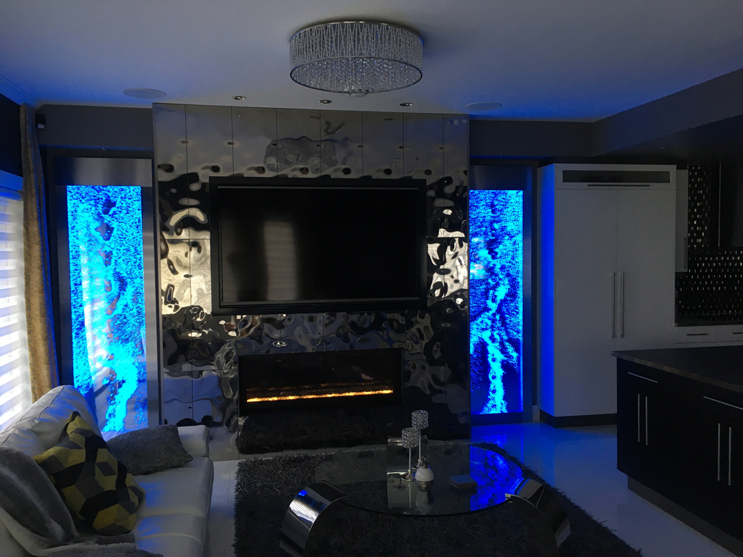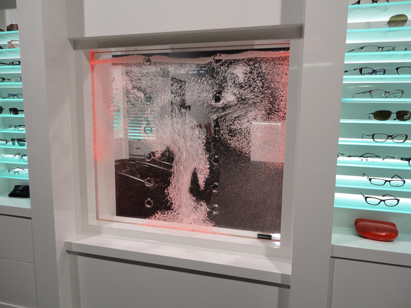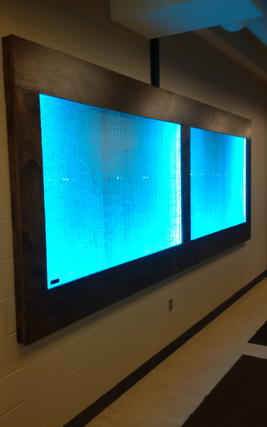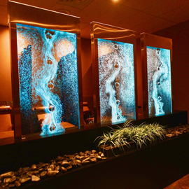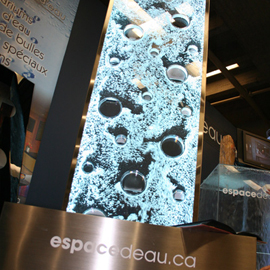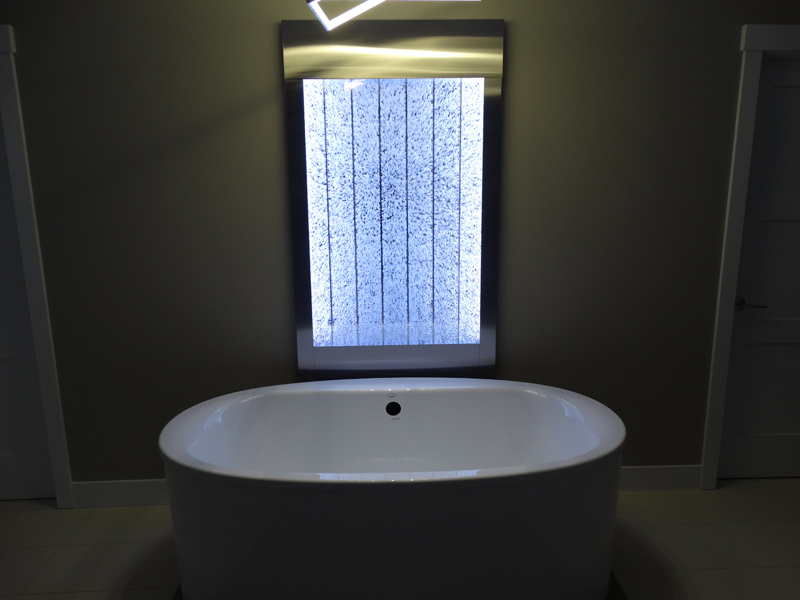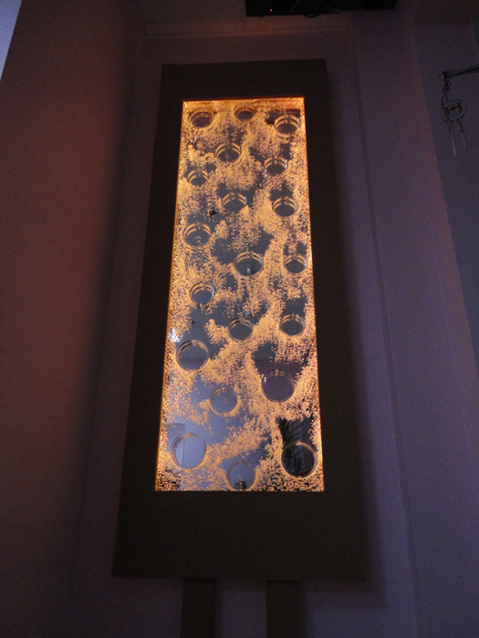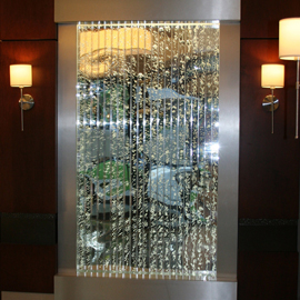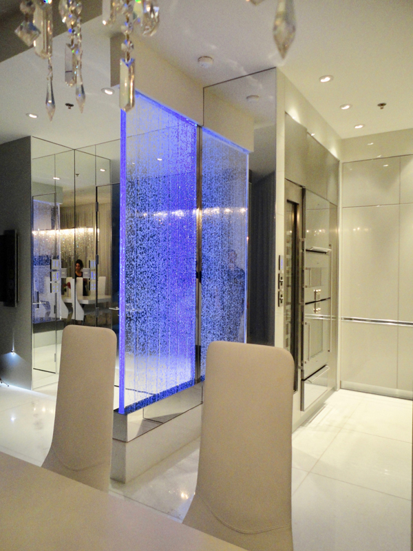 Les murs de bulles intérieurs ajoutent de la vie à vos espaces. Alternative aux cloisons traditionnelles, les murs de bulles étonnent toujours par leur mouvement et leurs couleurs variées. Puisque l'eau est un élément négatif et l'air, un élément positif, le mur d'eau agit en tant que filtreur naturel, attirant les poussières vers l'eau et nettoyant ainsi l'air, tout en gardant le taux d'humidité ambiante stable.
