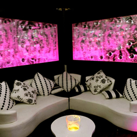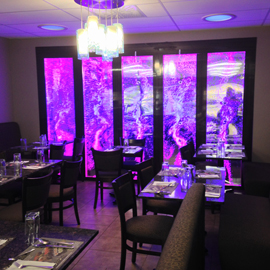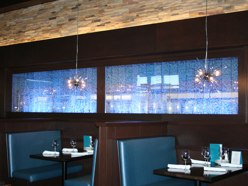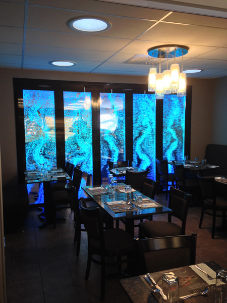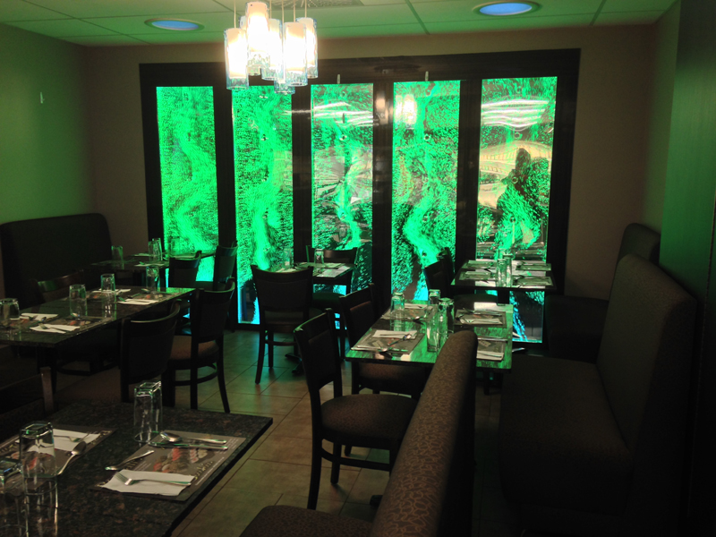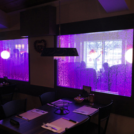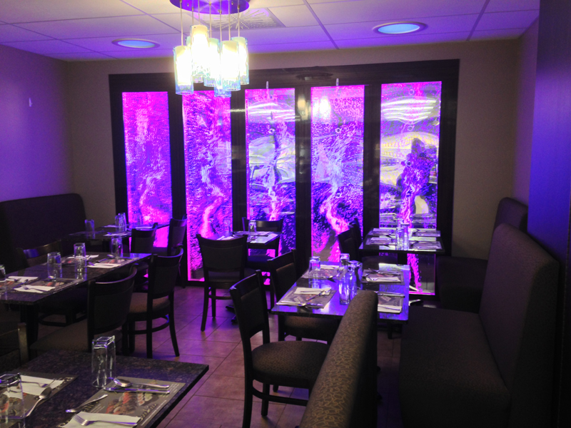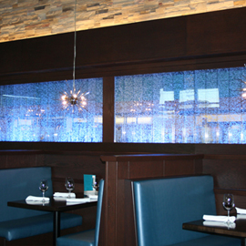#568 Mur de bulles double. Il offre un impact lumineux saisissant et rajoute un côté chic au restaurant.