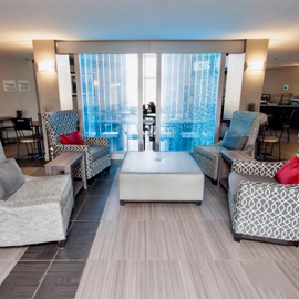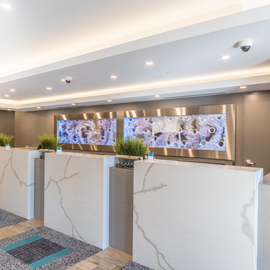 #546 Mur de bulles encastré, couleur blanche, dans un hall d'hôtel.