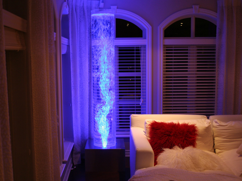 #541 Colonne de bulles autoportante, couleur bleue, utilisée de façon décorative dans une résidence.